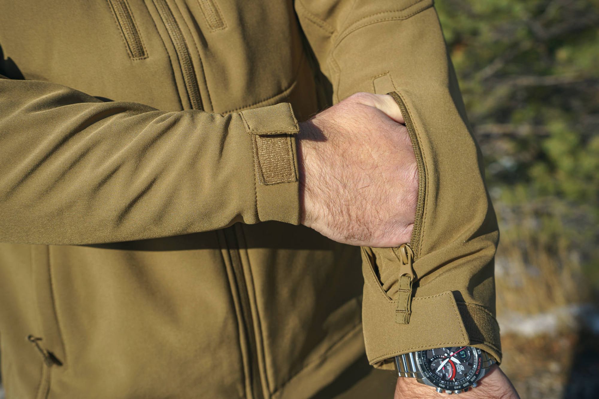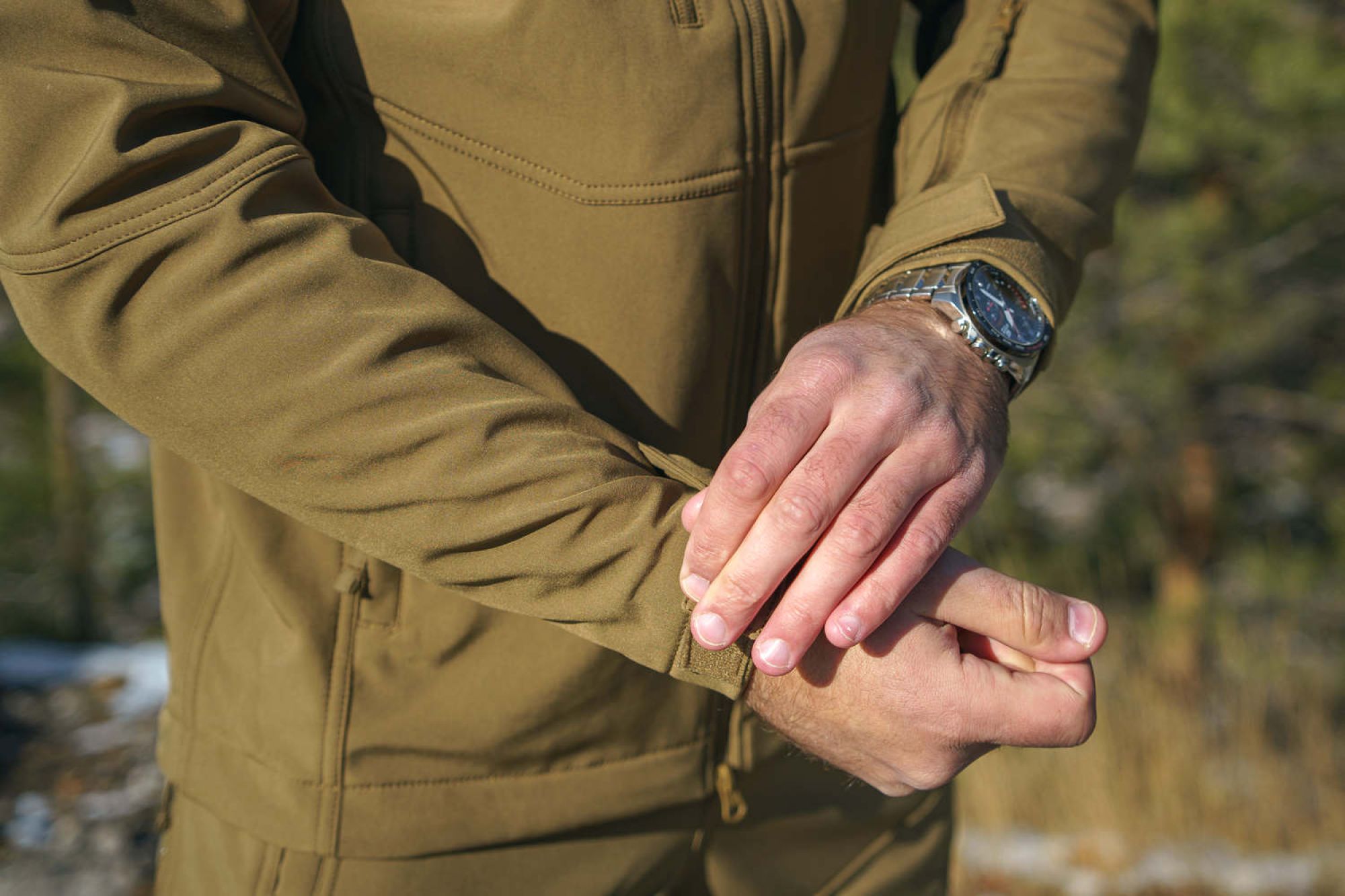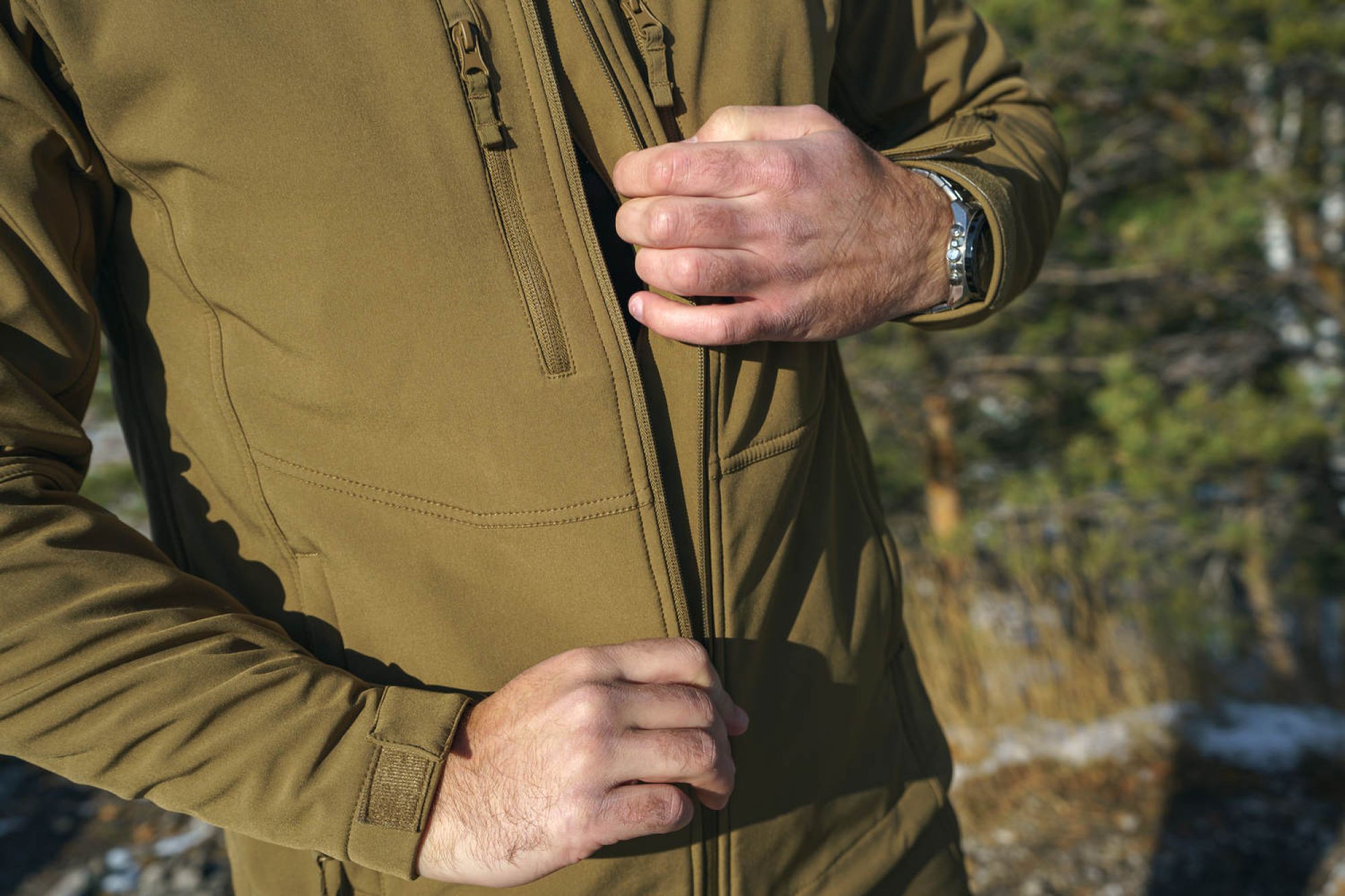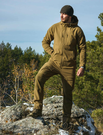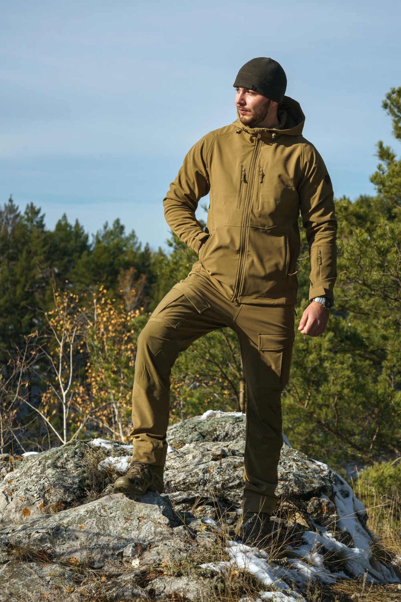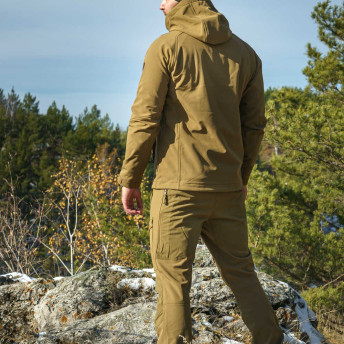 • трехслойный softshell: прочный, износостойкий, устойчивый к механическим повреждениям верхний слой, мембрана и флис