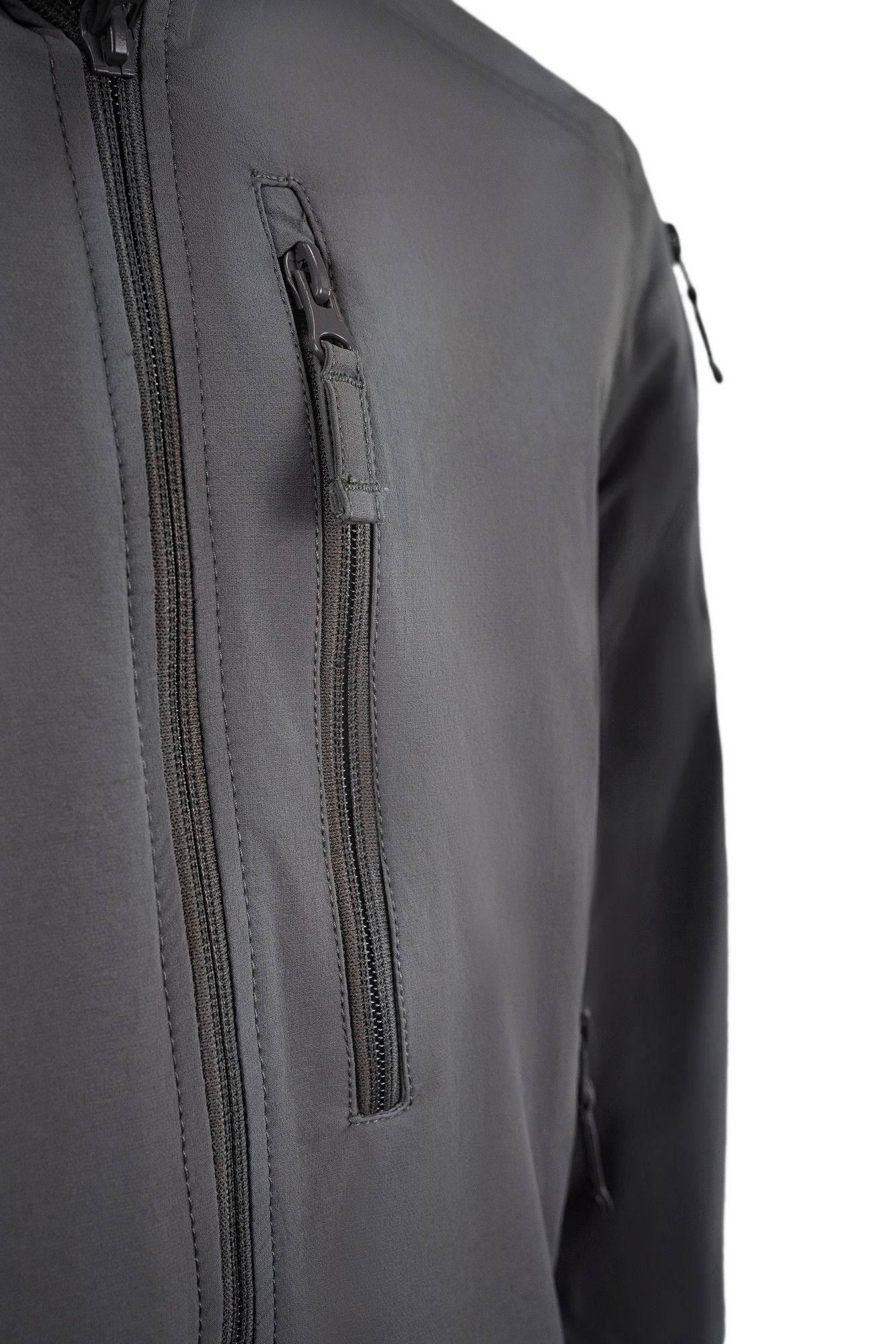 2 нагрудных, 2 боковых и 1 на левом рукаве, 2 внутренних кармана застёгиваются на тесьму -молнию