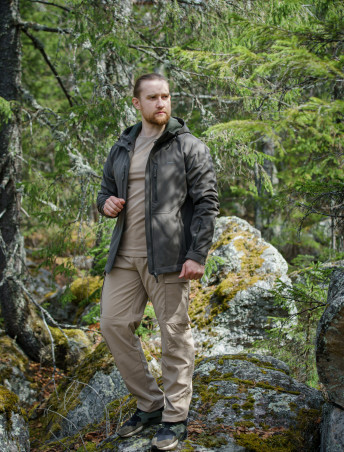 • трехслойный softshell: прочный, износостойкий, устойчивый к механическим повреждениям верхний слой, мембрана и флис