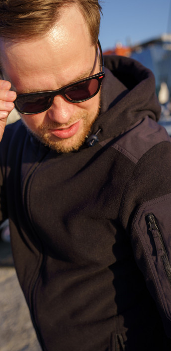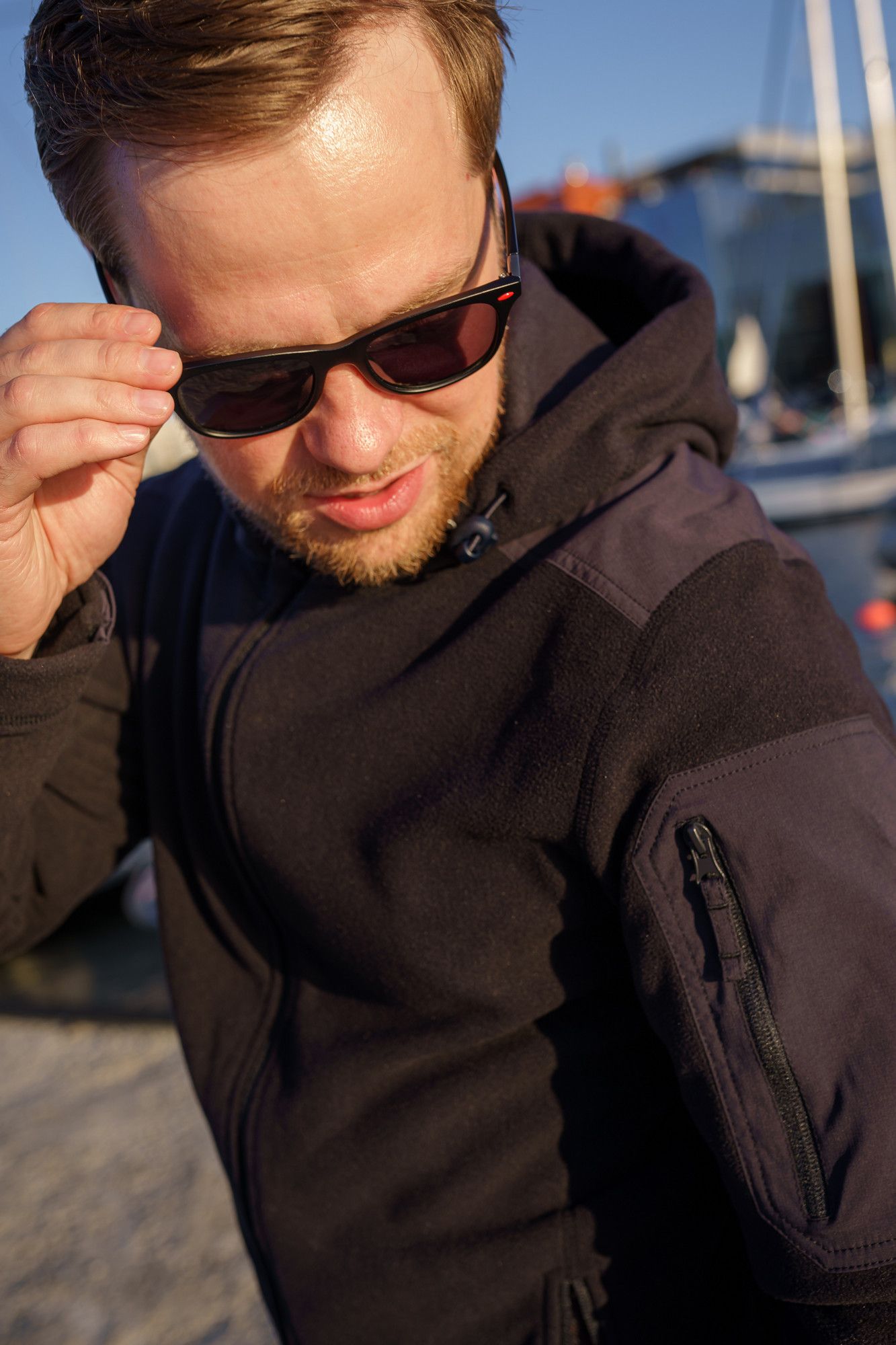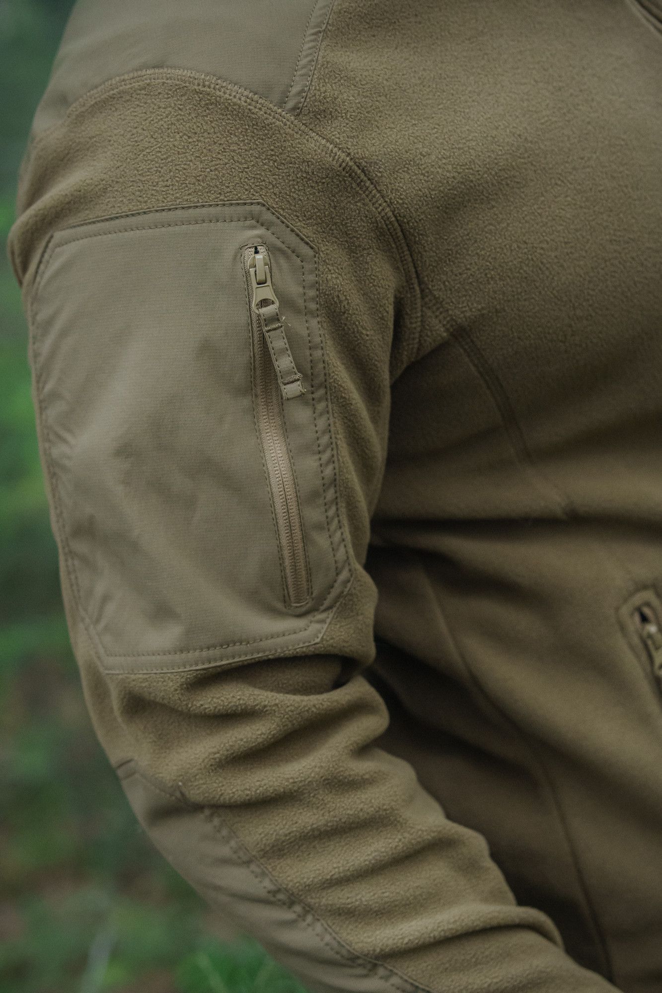 2 стандартных боковых и 2 на рукавах, фиксируются на застёжку-молнию