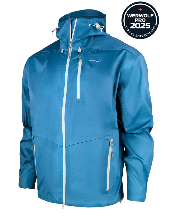 Куртка изготовлена из трёхслойного эластичного композита с показателями влагостойкости и паропроницаемости 20000мм/20000 г/м2/24 часа.