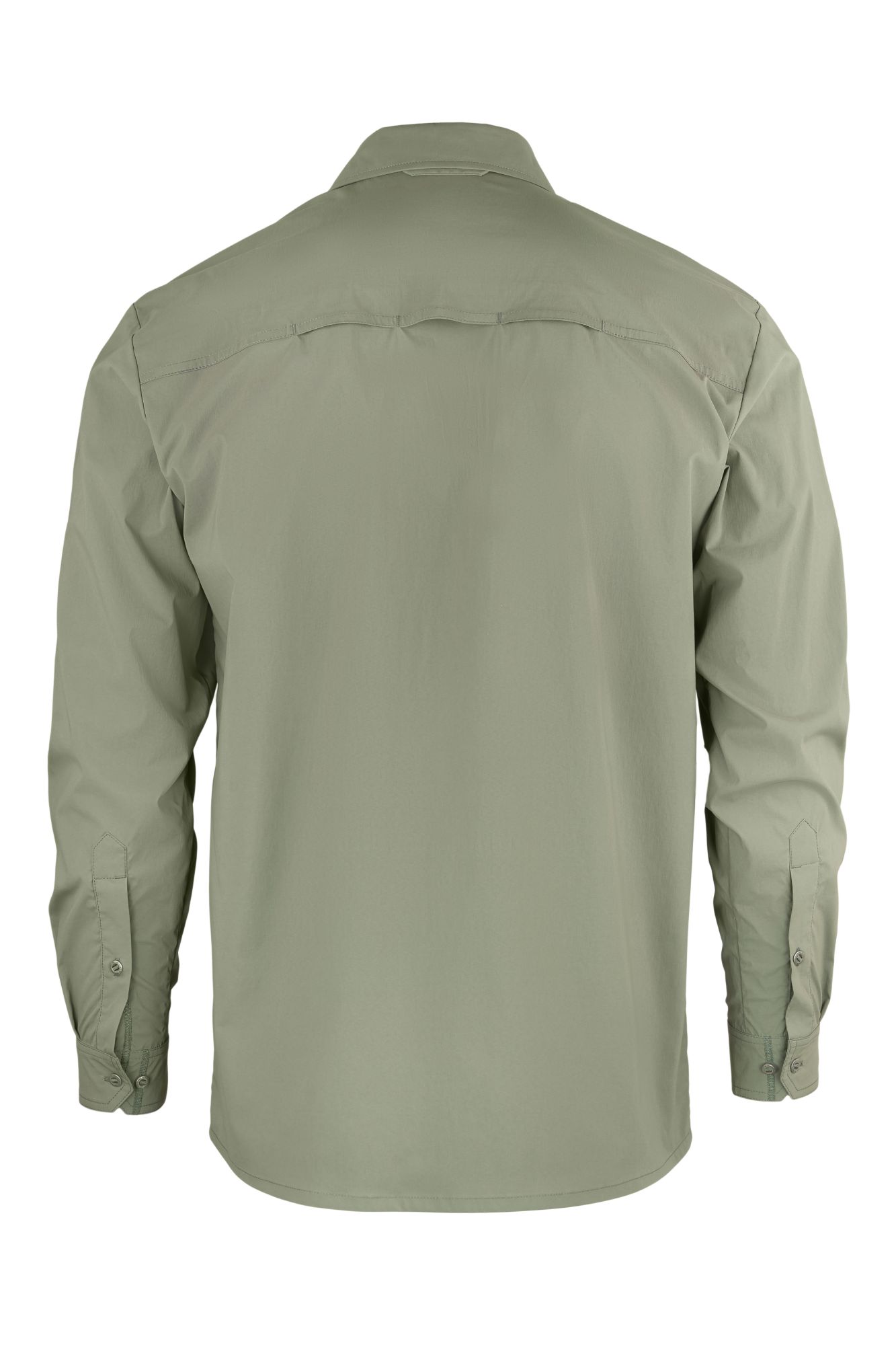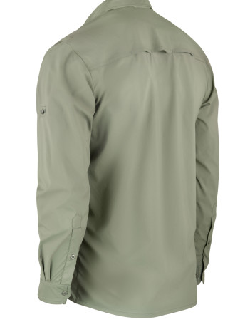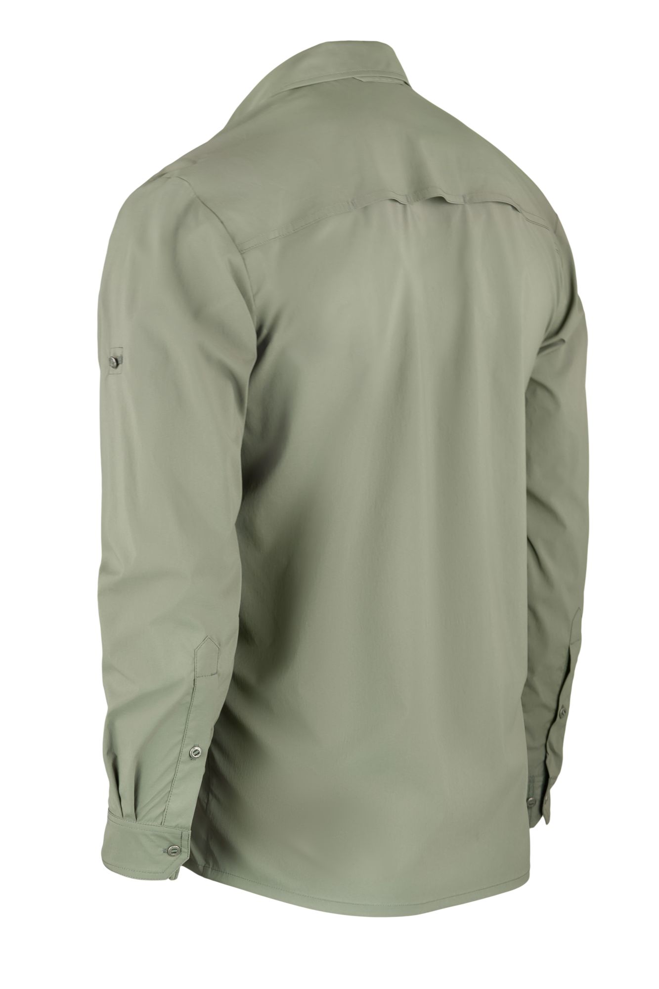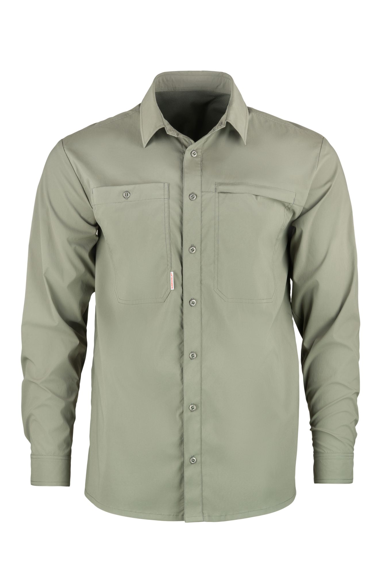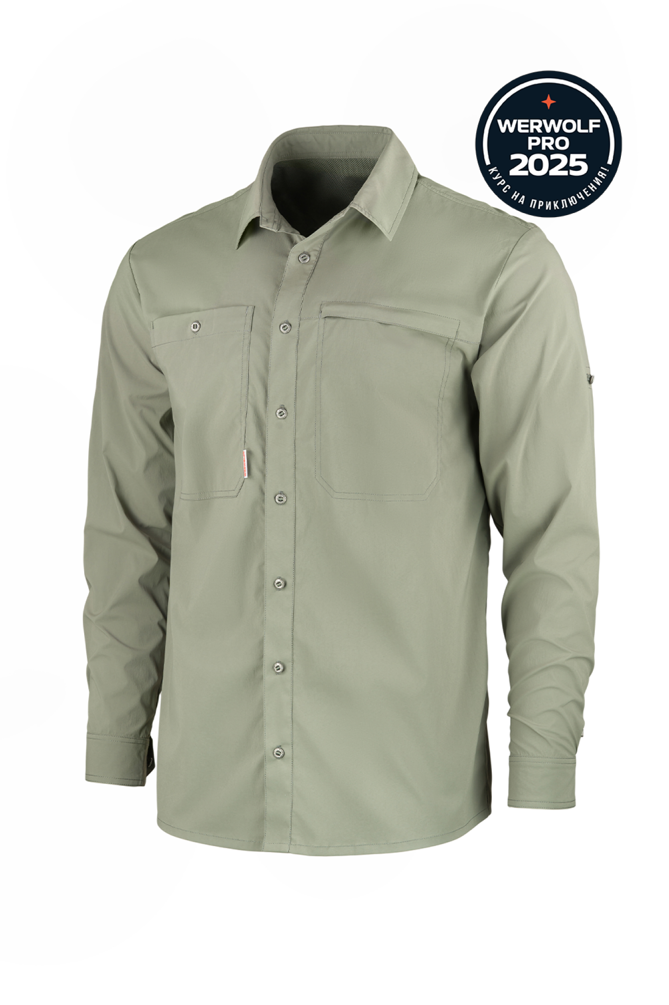 Лёгкая летняя рубашка свободного кроя с длинным рукавом подойдёт для активного отдыха, туризма и городских будней.