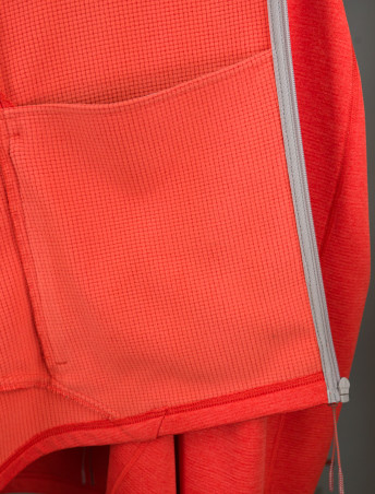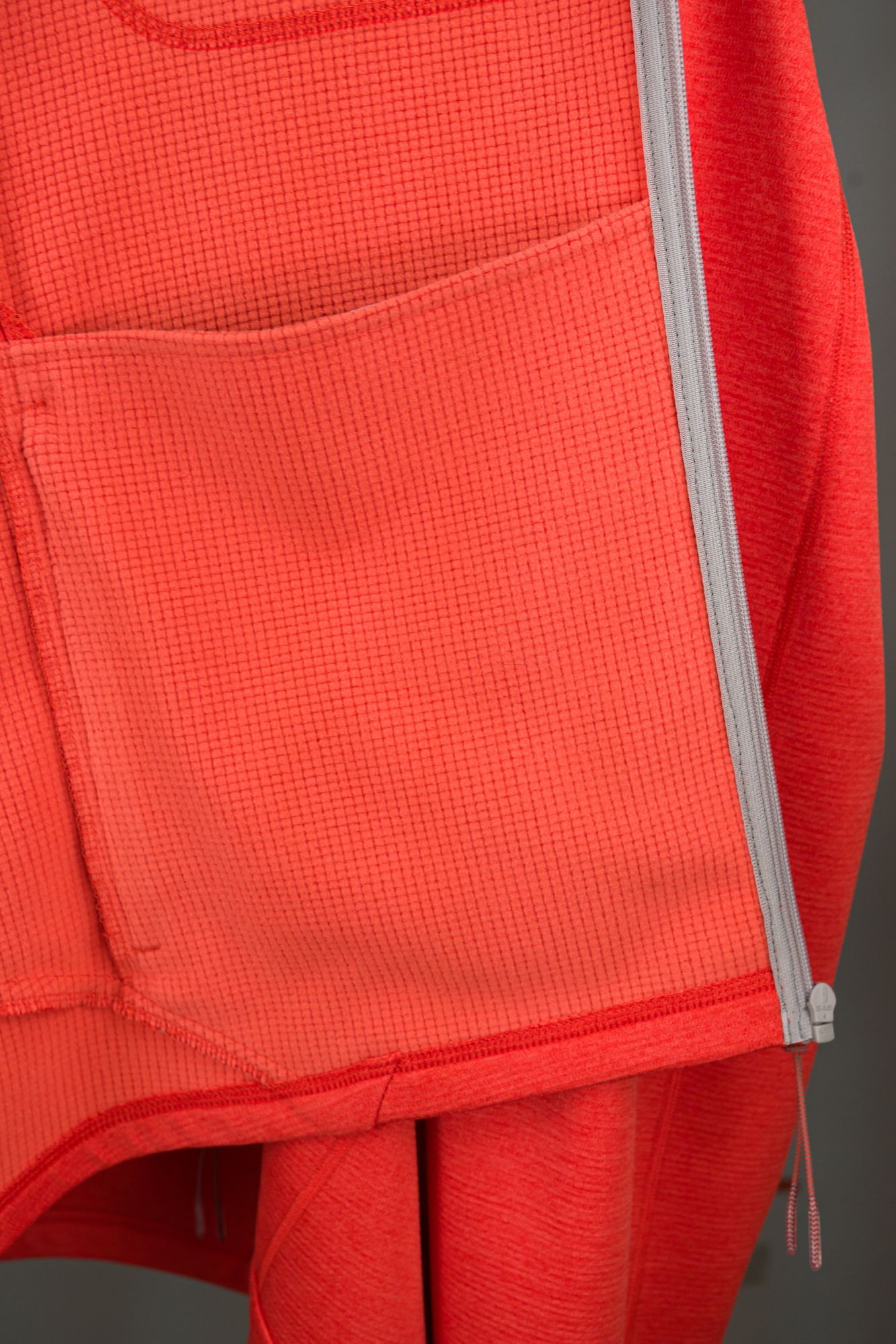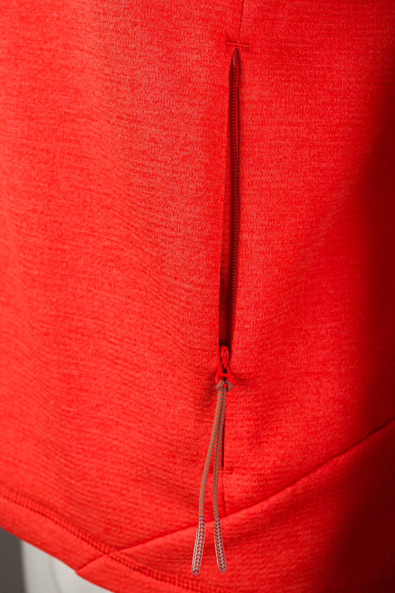 Толстовка, несмотря на плотное прилегание, не стесняет движений благодаря сочетанию анатомического кроя и эластичного материала, а также использованию технологии плоского шва. Лаконичный и обтекаемый дизайн дополнен карманами на потайных молниях.