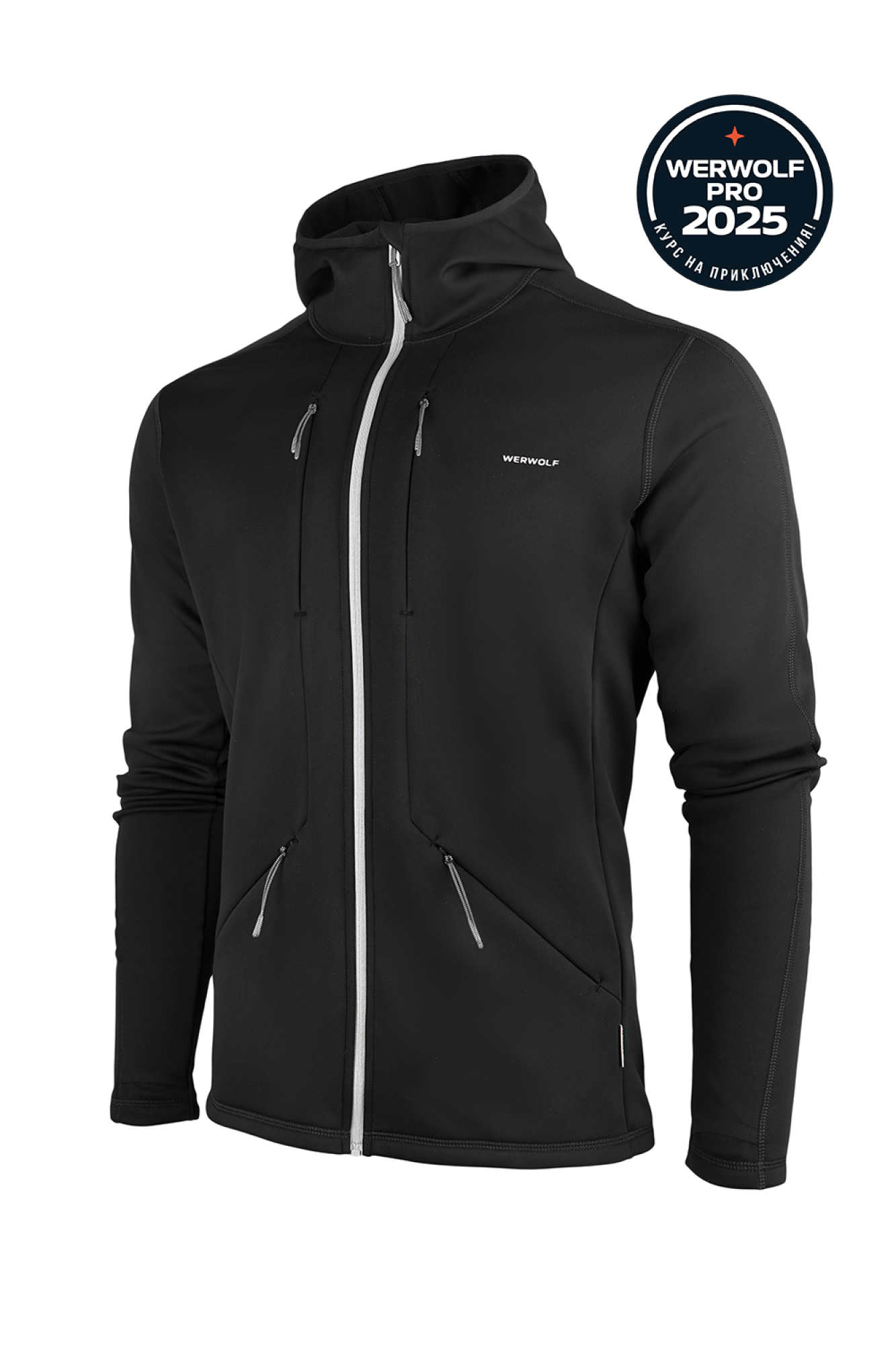 Для дополнительного тепла предусмотрены компактный капюшон и удлиненные рукава с отверстием для пальца. Четыре внешних кармана на потайной молнии помогут разместить все необходимые предметы.