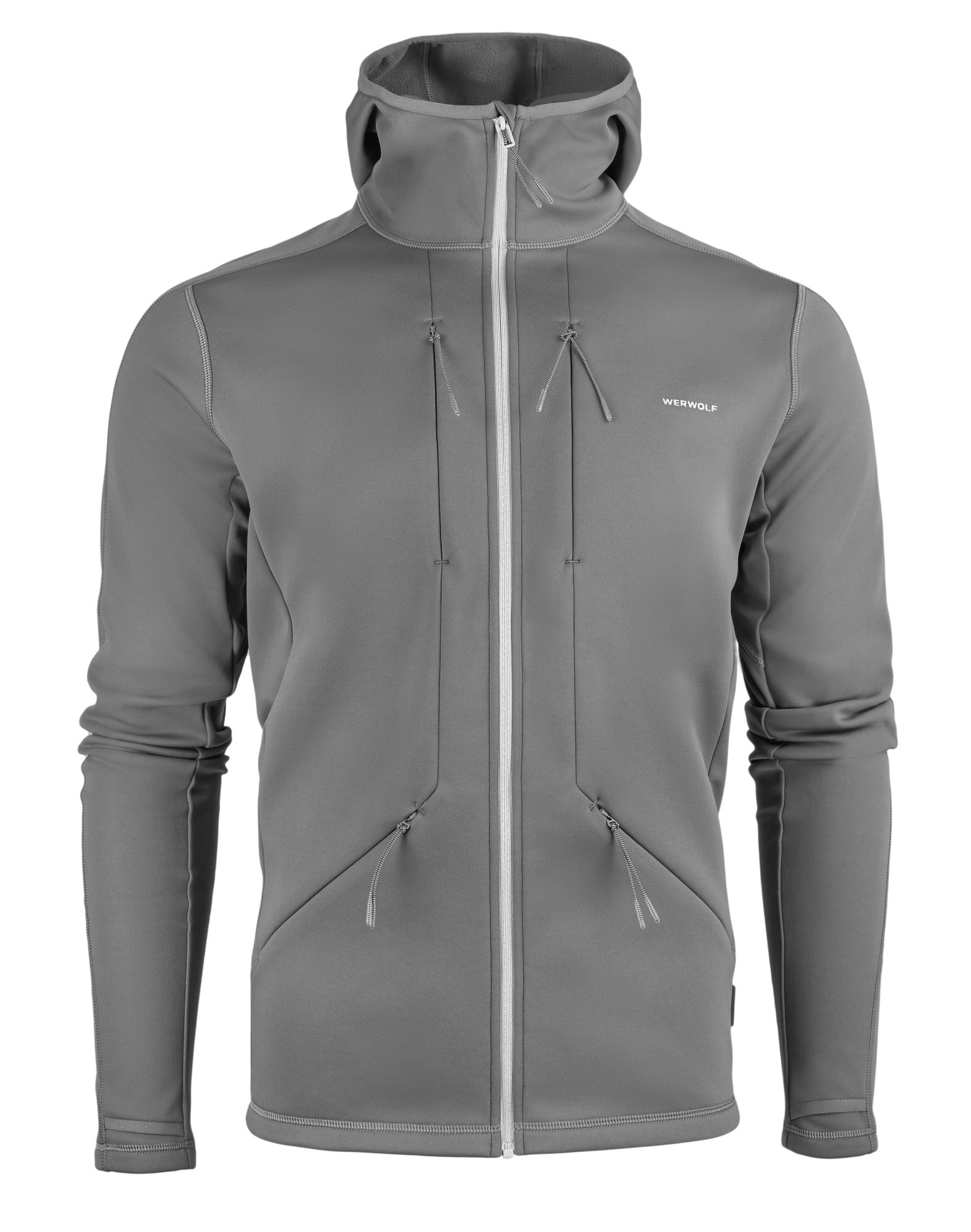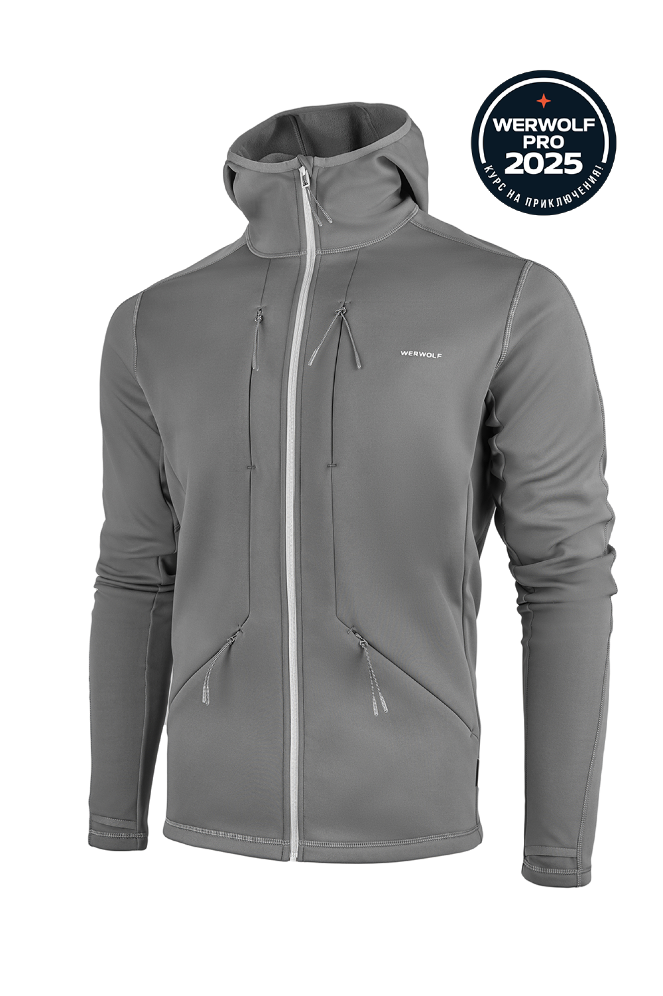 Для дополнительного тепла предусмотрены компактный капюшон и удлиненные рукава с отверстием для пальца. Четыре внешних кармана на потайной молнии помогут разместить все необходимые предметы.