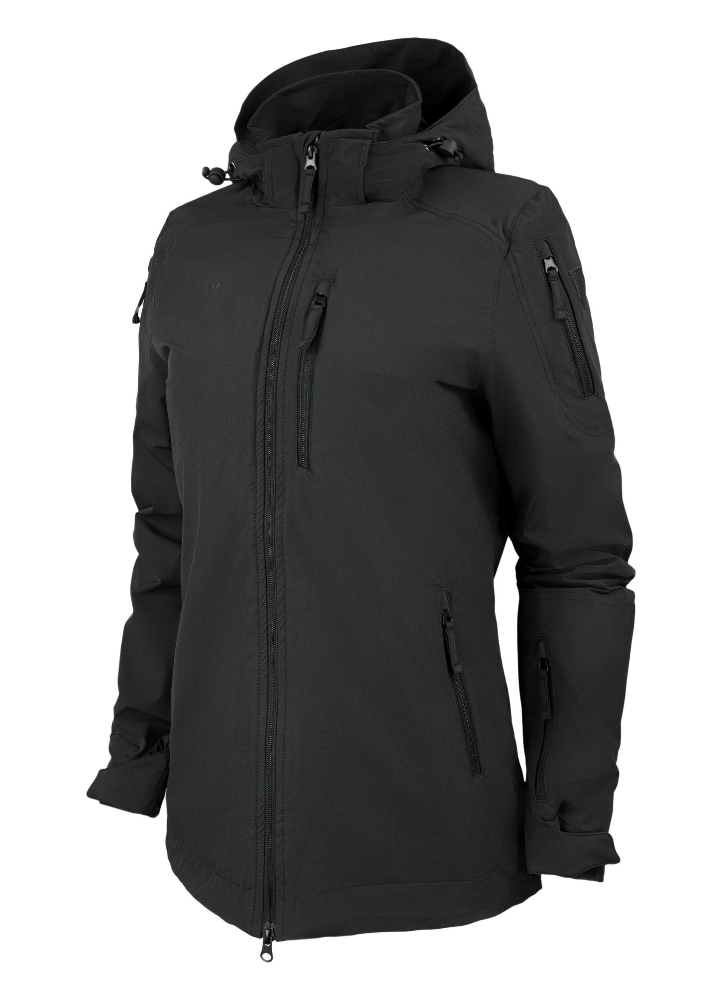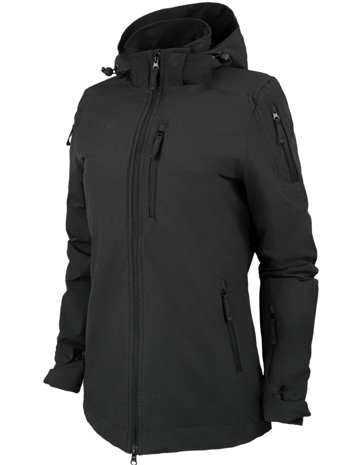 2 боковых, 2 на правом рукаве, 1 на левом,1 нагрудный, 1 внутренний - застёгиваются на тесьму молнию