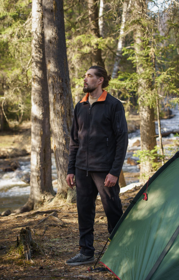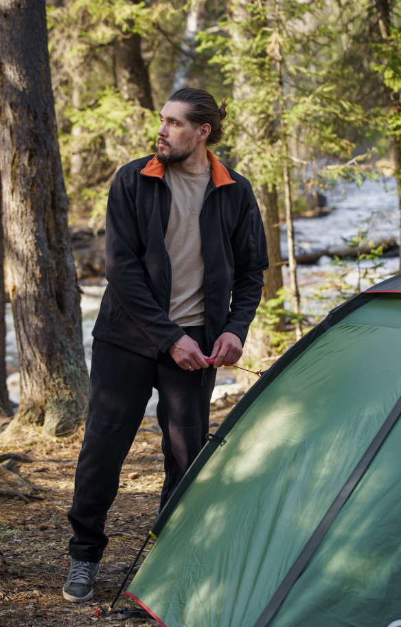 Мужской образ с флисовым костюмом Comfort, утеплённым жилетом Condor и футболкой с коротким рукавом идеально подходит для комфортного отдыха в городе и на природе.