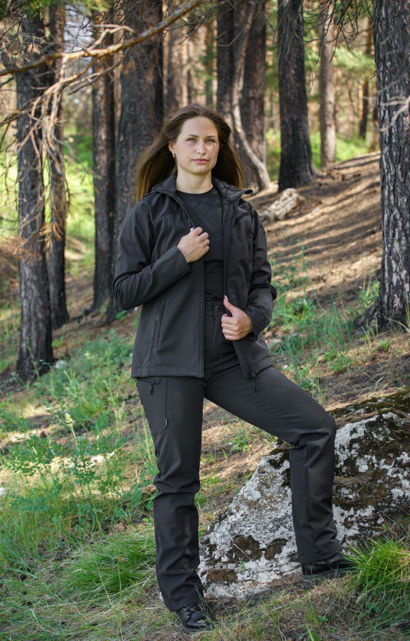 Куртка Ranger, брюки Ranger и футболка с коротким рукавом — идеальный выбор для создания стильного и комфортного женского образа. Этот комплект выполнен в чёрном цвете, что придаёт ему элегантность и универсальность.