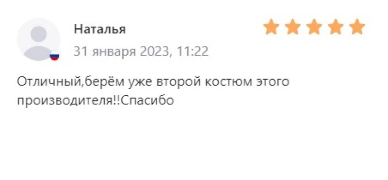 Отличный,берём уже второй костюм этого производителя!!Спасибо